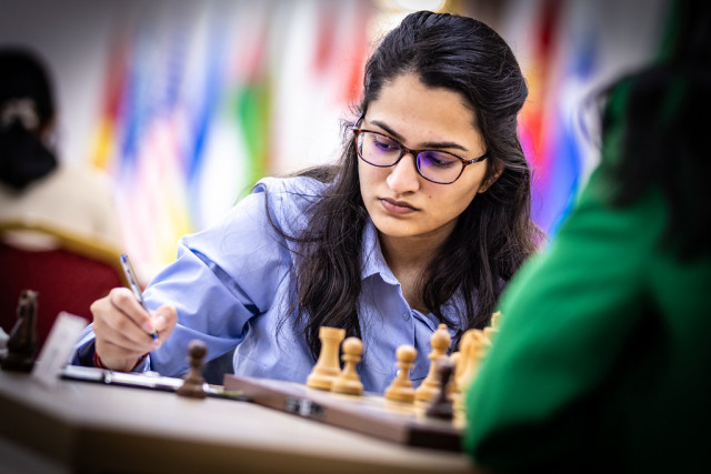 23-летняя индийская IM Вантика Агравал (на фото) повела в счёте в матче с Екатериной Лагно.
