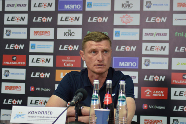 На фото – главный тренер зенитовского дубля Константин Коноплёв на пресс-конференции.
